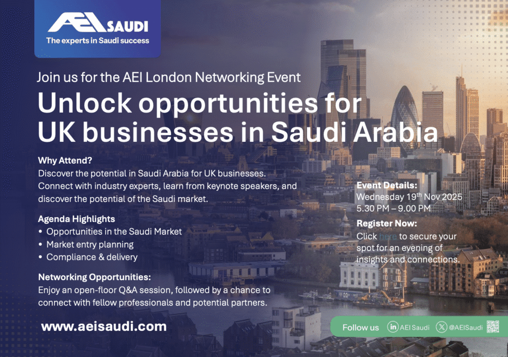 AEI Saudi London Networking Event – Unlock Opportunities for UK Businesses in Saudi Arabia
